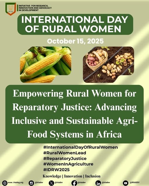 As we at IRIAD-The Electoral Hub mark the International Day of Rural Women, themed “Empowering Rural Women for Reparatory Justice: Advancing Inclusive and Sustainable Agri-Food Systems in Africa,” we stand with every woman who tills the soil, nurtures communities, and keeps our food systems alive.