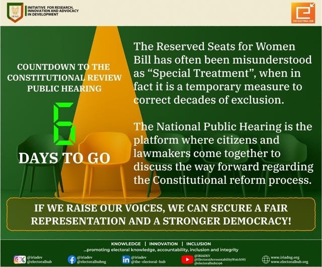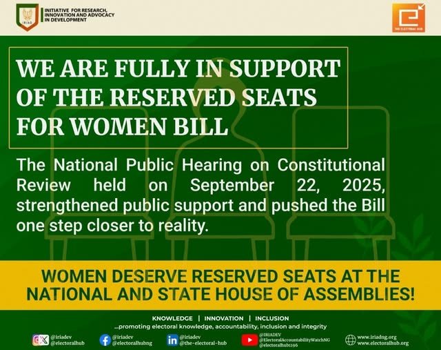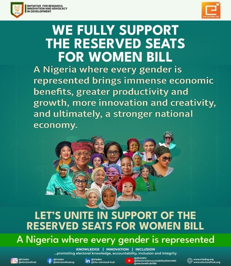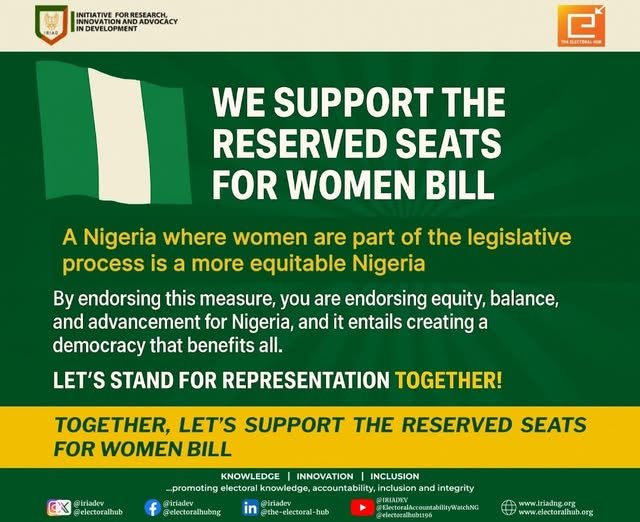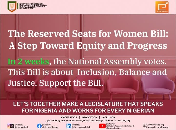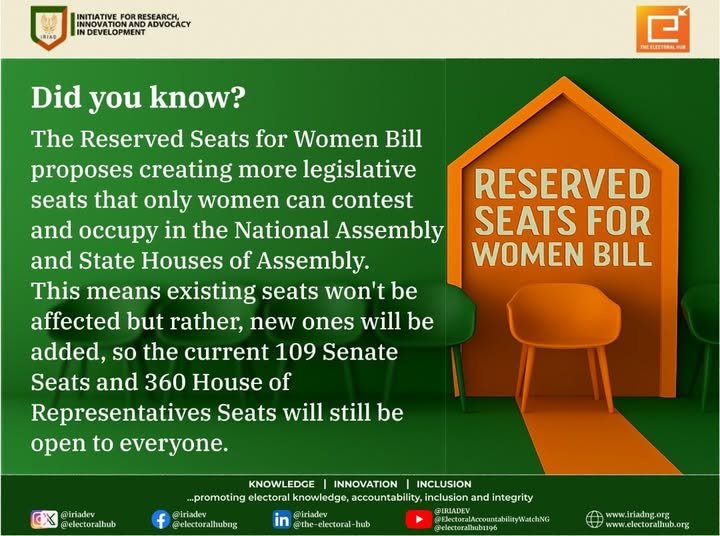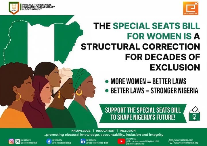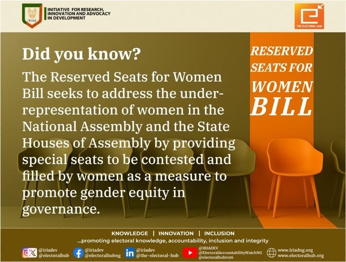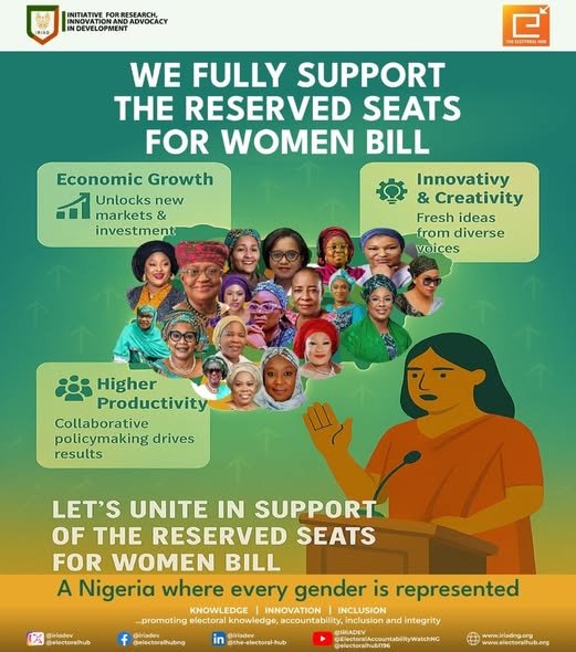 The Reserved Seats Bill is a bold, time-bound constitutional reform that seeks to guarantee women’s representation in the National and State Houses of Assembly.