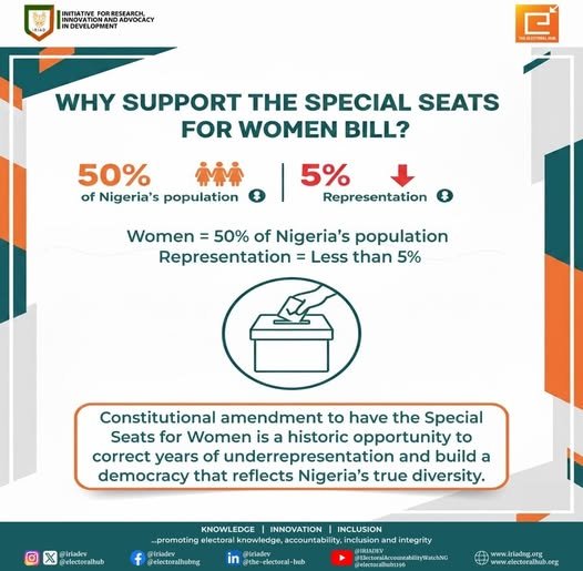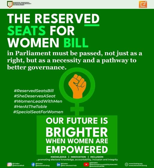 The Reserved Seats for women Bill is not about giving women undue power; it is about restoring balance and building a parliament that truly reflects the diversity of Nigeria.