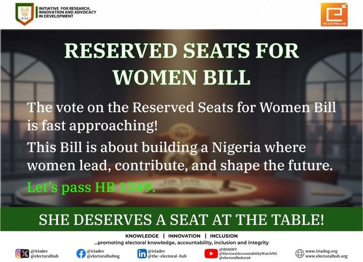 The Reserved Seats for Women Bill (HB 1349) marks a crucial step toward building a more inclusive and equitable political landscape in Nigeria.