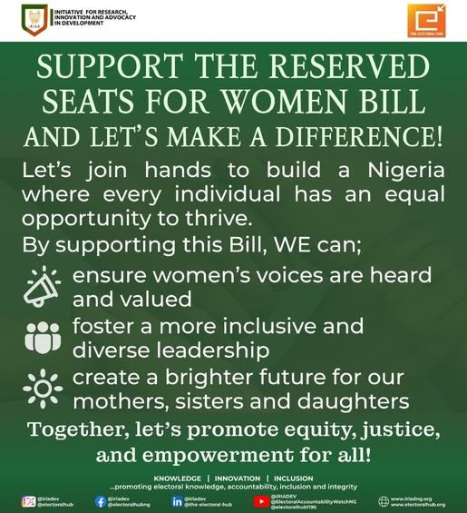 Support the Reserved Seat for Women Bill for a Better Nigeria!
