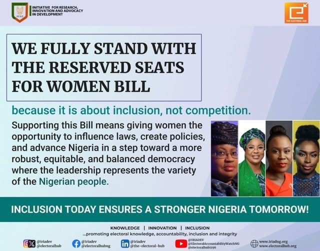 This Bill is not just about reserved seats, it’s about the future of governance in Nigeria.